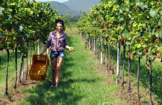 Langzaamaan werd, op basis van uitgebreid onderzoek, de beste grond voor de nieuwe wijn geselecteerd. De druiven voor de Franciacorta van Casa Villa – chardonnay, pinot nero en pinot bianco – komen van een wijngaard van 37 hectare, waar uitsluitend organische mest en andere natuurlijke middelen gebruikt worden. Niet direct een gemakkelijke wijngaard: hoewel een deel ervan op hellingen met de lieflijke naam Madonna della Rosa ligt, zijn die hellingen akelig steil en staan de druivenstokken er op terrassen.