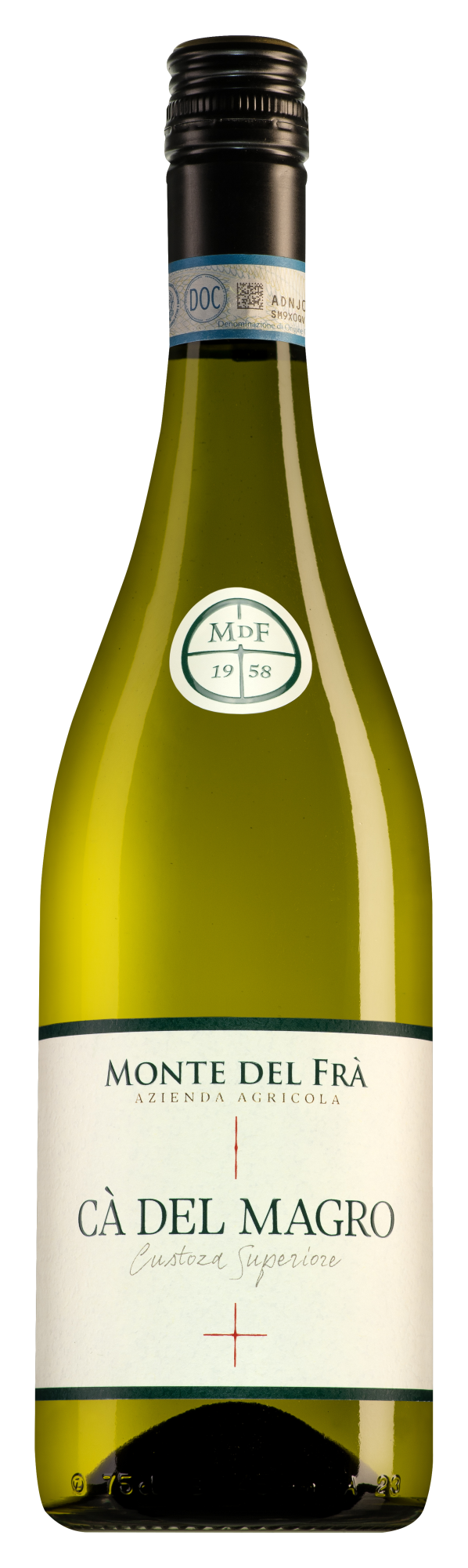 De Monte del Frà Custoza Superiore Cà del Magro is een indrukwekkende witte wijn van cru-niveau, afkomstig van een oude wijngaard in het hart van Custoza, nabij het Gardameer. Deze Superiore wordt gemaakt van een bijzondere blend van Garganega, Trebbiano Toscano, Cortese, Riesling Italico en andere lokale druiven, waarvan sommige stokken meer dan 50 jaar oud zijn.